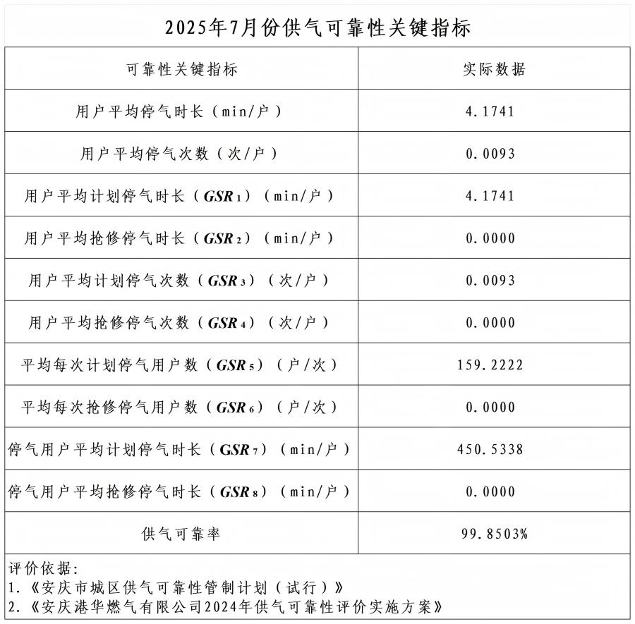 上一篇 : 2025年6月份供氣可靠性關(guān)鍵指標